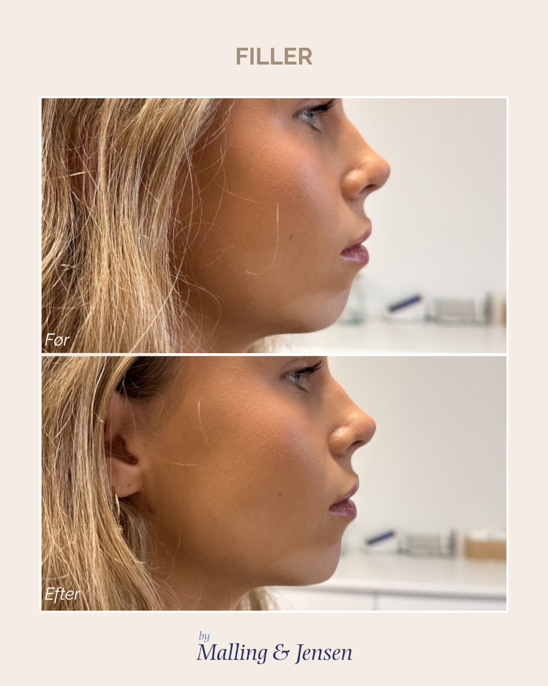 Før og efter 1 ml filler i hagen.