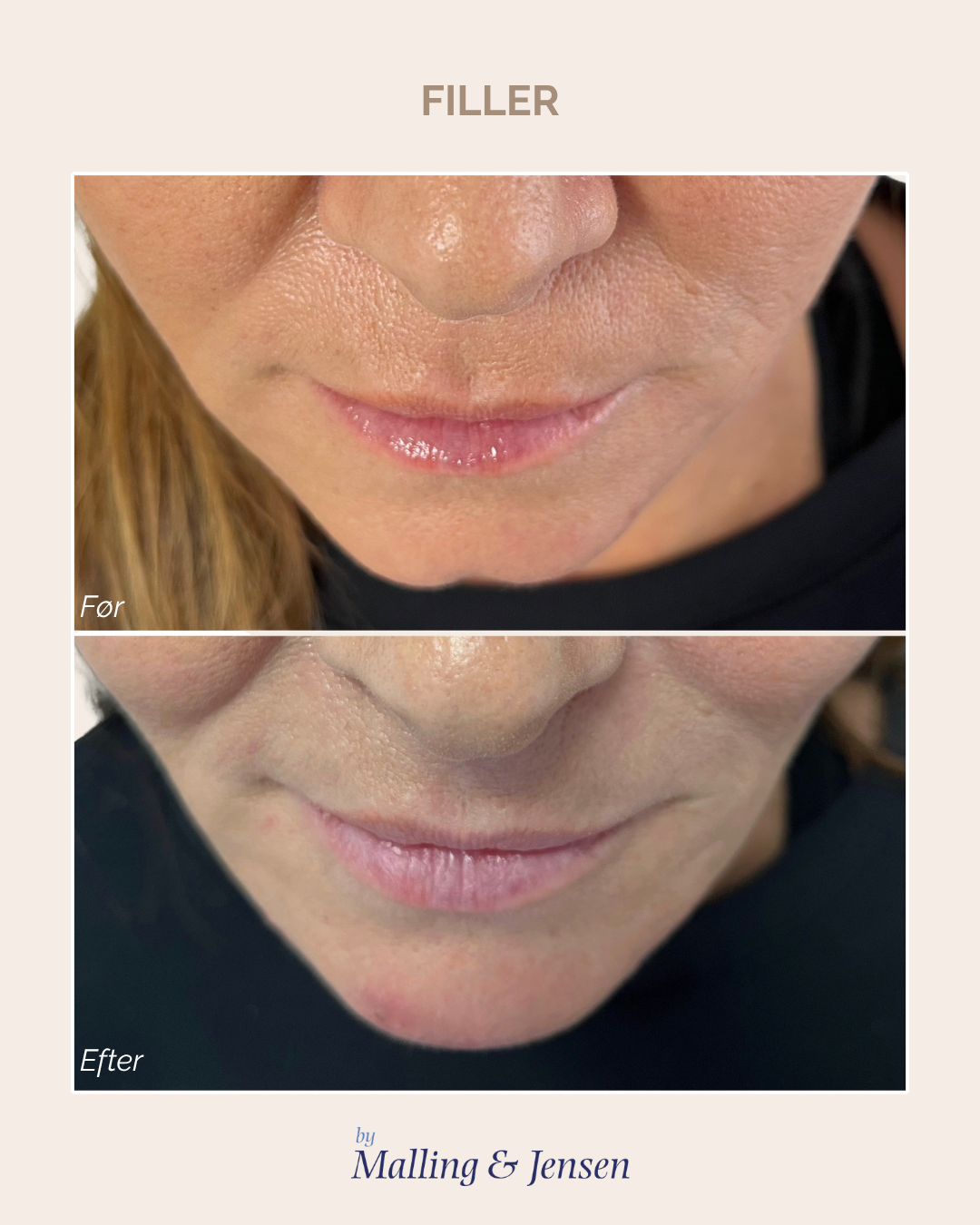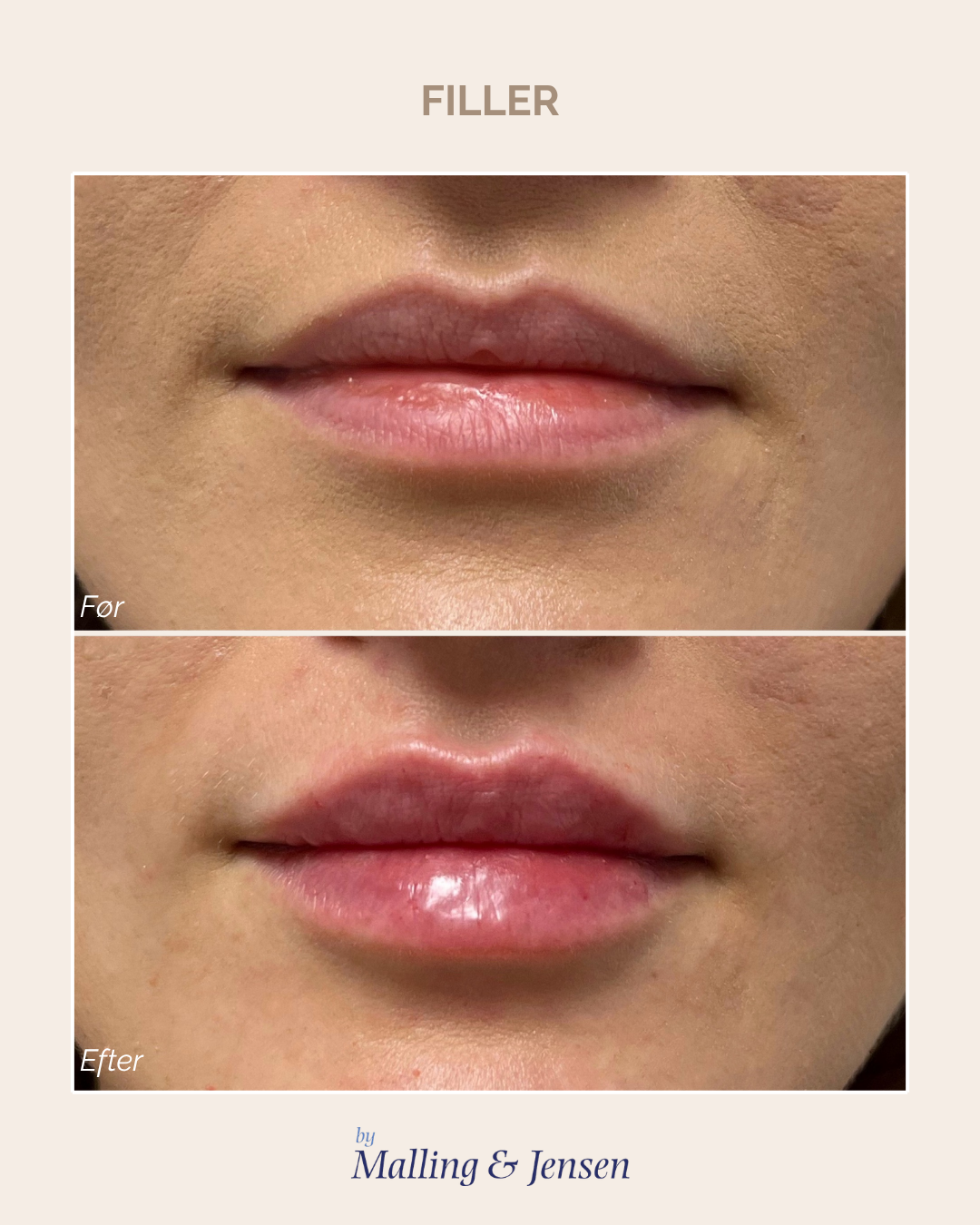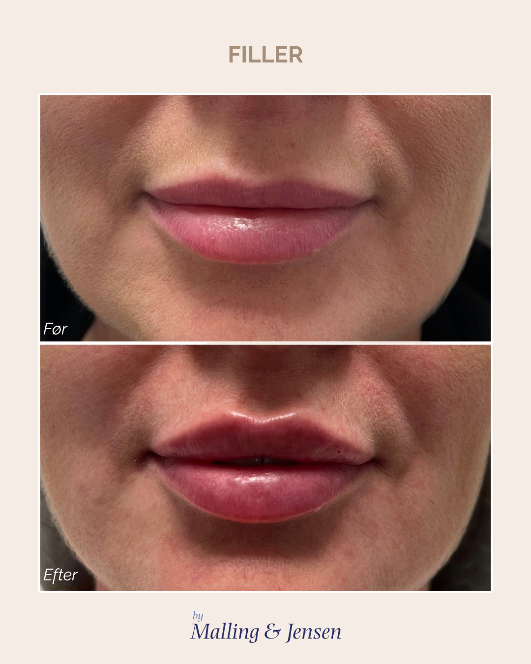 Læber behandlet med 0,5 ml filler.